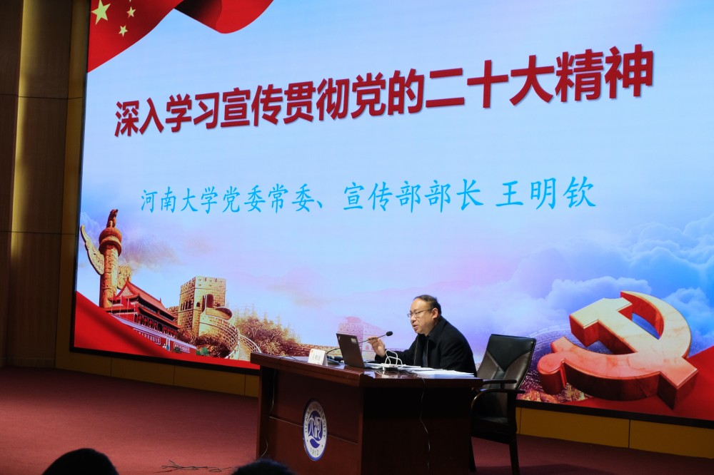 报告会上,王明钦结合当前国内国际形势,通过深入浅出的语言和生动鲜明的事例,从中国共产党过去五年的工作和新时代十年的伟大变革、马克思主义中国化时代化、中国式现代化、全面建设社会主义现代化国家的目标任务、坚持党的全面领导和全面从严治党、应对风险挑战等七个方面,对党的二十大提出的重要思想、重要观点、重大战略、重大举措进行了系统诠释。