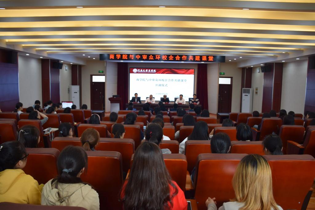 On September 27th,the opening ceremony of the class held by the Business School on 2:00pm. Senior partner, zhonghuan accounting firm. Mr. Yan Bingqi, quality partner Mr. Chen Jun, partner Mr. Cheng Xi, director of teaching affairs office of Henan University, professor Li Jie, dean of Business School, professor Wang Xingyu, senior project manager of zhonghuan accounting firm, final audit, Mr. Du Gaoqiang, senior manager of the accounting firm, and all certified public accountants from teachers of relevant colleges attended the meeting.The meeting is chaired by vice dean Xi Longsheng.