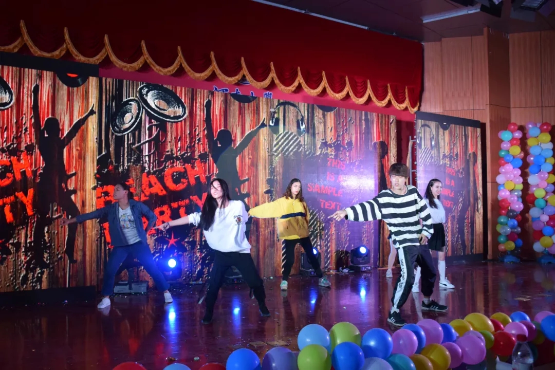 By the middle of the filed,the much anticipated string of songs from the teachers brought the atmosphere to a climax.Teacher Bing Qi sang the song "Desert Camels" passionately,teacher Peng Su sang the song "Take You To A Trip"warmly and teacher Xuwang Liu sang the song"Meeting Is A Song"powerfully,teacher Meng Wang sang the lively and lovely song"Curry Curry"which brought students endless happiness.Finally,with teacher Yang Zhou's five chorus"Love Each Other"let the scene cheer continuously.