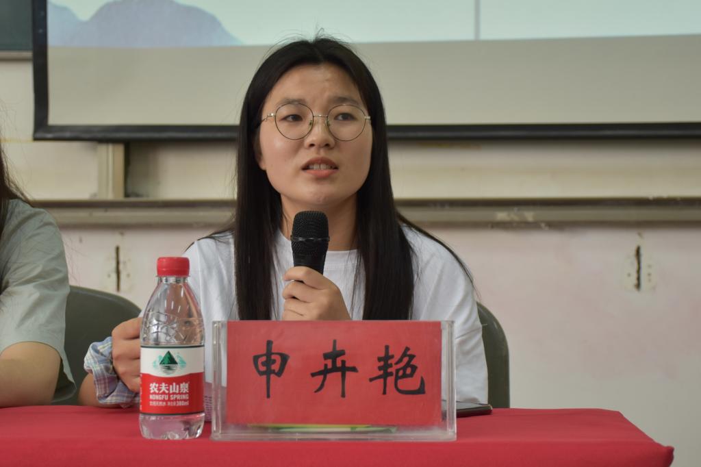 付晗涵首先向大家分享,争取保研资格要先明确自己的定位,找准方向,避免盲目跟风,随后她介绍了保研的一般流程,分享了自己在面试时积累的相关经验,同时强调期末考试成绩对于保研的重要性,希望大家重视并努力完成自己的课业,争取拿到优异成绩。接着,蒋辉红介绍自己的保研经历,他认为,只有提前通过网络平台了解保研信息,做好联系导师、准备相关资料、参加心仪院校的夏令营活动等准备工作,才能够在后续环节中脱颖而出。之后,申卉艳表示,英语在面试中是一项必要的技能,同学们一定要重视英语的学习,了解并掌握专业名词的英文表达,以便顺利通过面试。最后,申雪娇指出,在学习过程中一定要提高效率,合理规划时间,在迷茫的时候更要坚持自我,做好情绪管理。