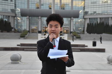 升旗仪式后,20级物流管理专业学生朱兴财作了题为“胸怀理想,自律自强”的国旗下发言。他以“扶摇直上九万里的鲲鹏”形容当代青年该有的姿态,强调新一代大学生应胸怀理想,并为理想付诸行动。同时,他表示,“不经一番寒彻骨,怎闻梅花扑鼻香”,青年学生要有吃得苦中苦的准备,不忘初心,牢记使命,朝着心中的方向不断前进。
