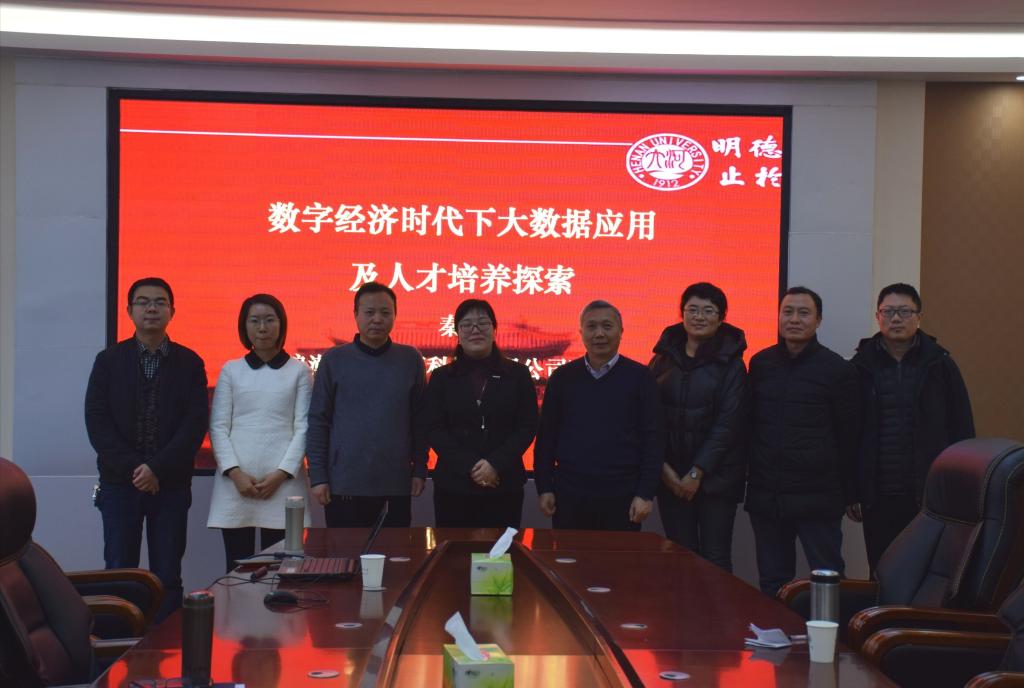 2020年1月6日上午,由浪潮铸远教育科技有限公司副总裁秦丽主讲的“数字经济时代下大数据应用及人才培养探索”的讲座在开云kaiyun官网201会议室召开。开云kaiyun官网院长王性玉、副院长李志强、开云kaiyun官网部分教师和学生共约30人参加了此次讲座,讲座由李志强主持。