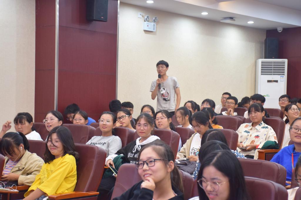 蔡川建议同学们提前规划自己大学生活,多走出去接触更多优秀的人。关于证书他提到,社会实践经验尤为重要,学习之余可以尝试考取证书,但证书不能和以后的工作画上等号。姚欣岑发言,她认为参加竞赛无论是对自我能力的提升,还是人脉关系的建立都具有十分重大的意义,新生们应积极参加各种比赛,在比赛中磨练自己。李曌赟主要从课程学习和出国两个方面向同学们分享了宝贵经验,她认为课堂上的认真听讲、平时的积累尤为重要,并向大家讲述了自身丰富多彩的出国经历,鼓励大家多出去看看,并寄语19级新生要“珍惜时光,不负年华”。