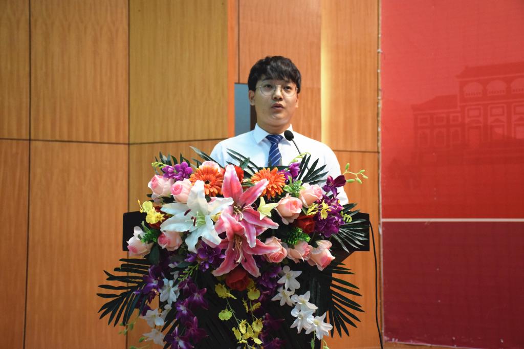 工商管理系博士罗巍作为教师代表发言。他从三方面对新同学提出期望:一、在学习中学会自我管理,培养自己的求知欲和好奇心;二、尊敬师长,团结同学,在成长中学会感恩;三、树立人生目标,在大学生活中提高素质,开拓创新。