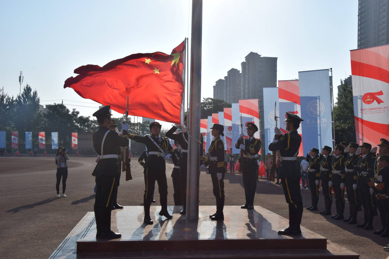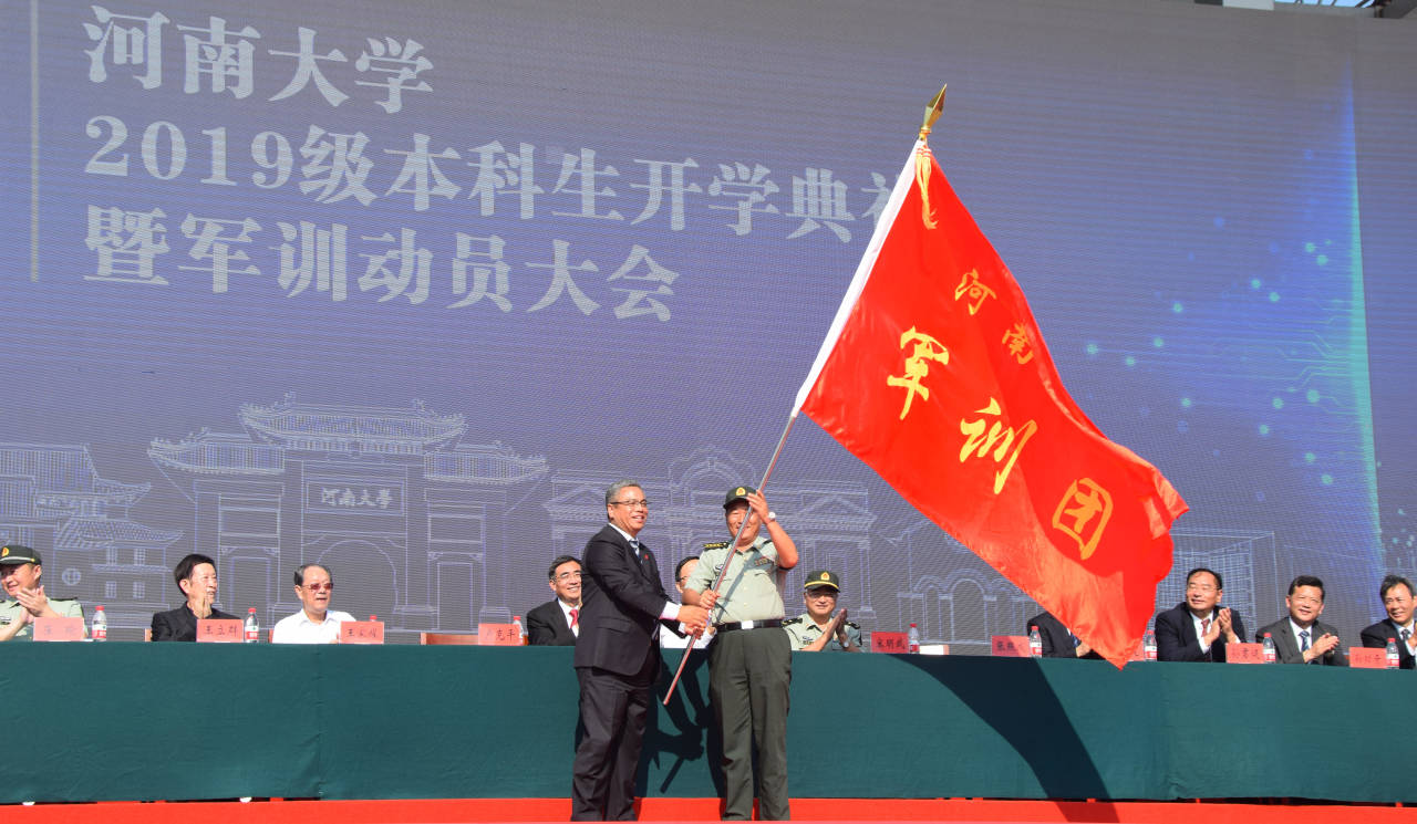 在轻快的乐曲中,校党委书记卢克平向2019级军训团团长授旗,这标志着开云官网2019级新生军训正式拉开了帷幕。