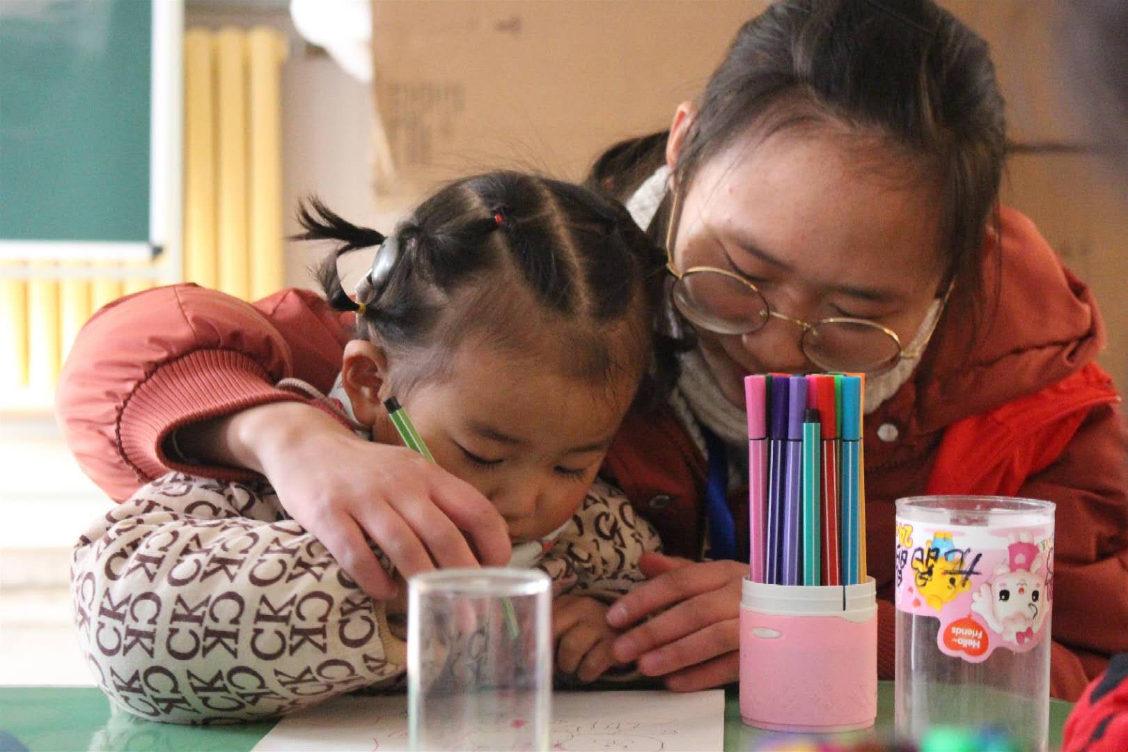志愿者分为两组,分别负责“宝宝班”和“贝贝班”,第一个环节是涂色游戏,老师将孩子们的画笔交给志愿者,由志愿者和孩子们一起为图画涂上美丽的颜色,通过色彩帮助提高孩子的认知能力。第二个环节是捏玩偶游戏,志愿者和小朋友一起完成,由此提高孩子们的动手能力,现场氛围其乐融融。游戏结束后,志愿者与孩子亲切进行合影,并送上小礼物告别。