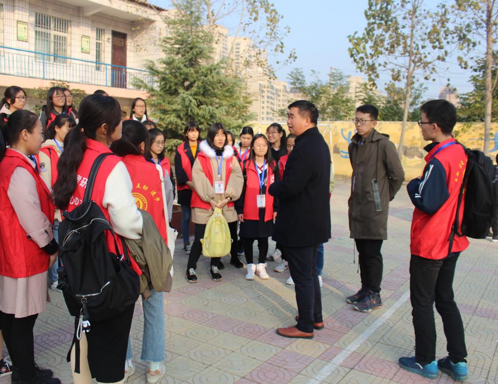 下午2:30,青年志愿者在南苑小广场集合完毕,身穿志愿工作服统一出发。半小时后,志愿者们到达了辛堤头小学并受到校长的亲切接待,他向志愿者们简单交代了活动安排和注意事项,并与志愿者进行合影留念。