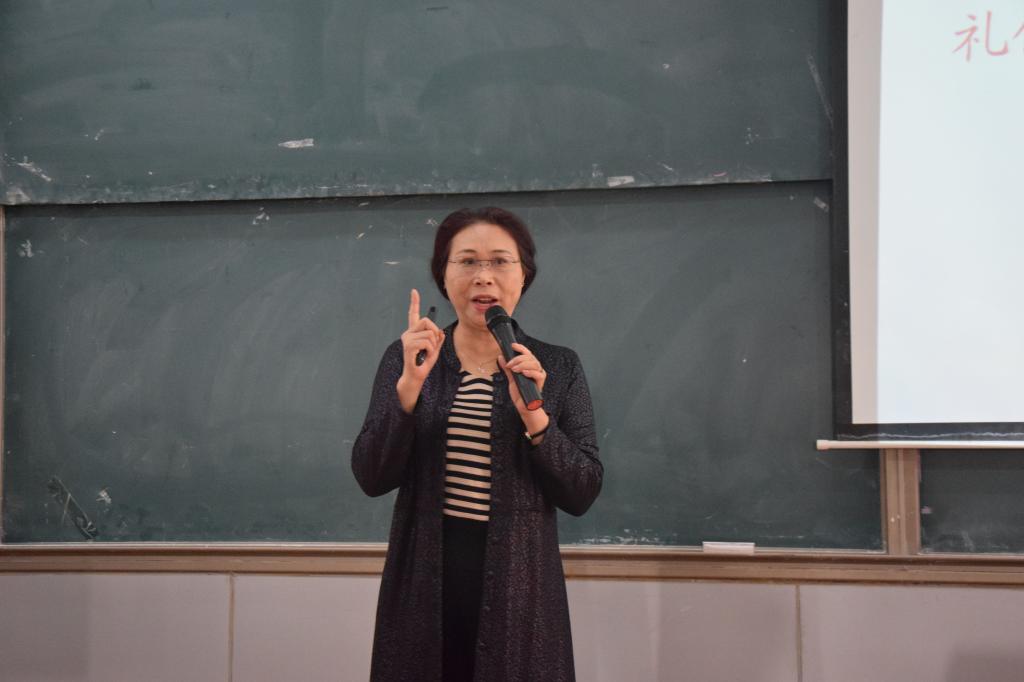 王翠老师通过分析调查结果,讲述了礼仪对事业成功、个人健康的重要性。并结合公司招聘的案例,提出了“大学生人际交往水平普遍偏低”的问题。最后,王翠老师再将礼仪引申到文明,告诫同学们文明、习惯、素养、细节共同决定成败,内外兼修方能成功。