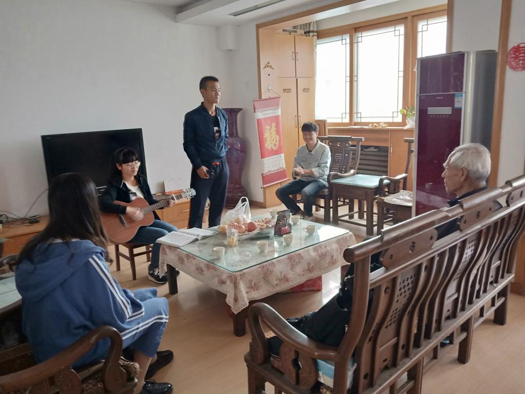 志愿者来到退休老师家中,受到了老师们的热情欢迎。张明正老师提到,青年学生要有所追求,不断进步,不断超越,积极向上,开阔眼界。沙献玉老师询问了志愿者们的专业,并提出了建议。老师还分享了自己考上北大的经历与之后的就业生涯,鼓励同学们努力学习,走向更远。刘建中老师说到无论做人做事都要踏踏实实,努力奋进,大学生更要珍惜青春时光,培养创新精神,奉献社会。随后志愿者为老师们带来艺术表演,受到老师们的好评。