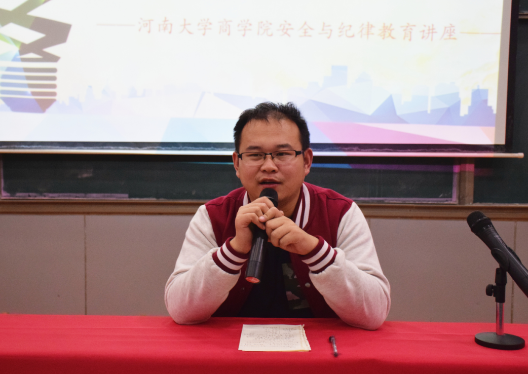 10月20日晚,为提高同学们的安全纪律意识,让同学们的大学生活更加和谐。开云官网在综合楼7305教室举办了以“安全如影,纪律随行”为主题的安全与纪律教育讲座。2015级辅导员齐冰老师应邀出席本次活动。