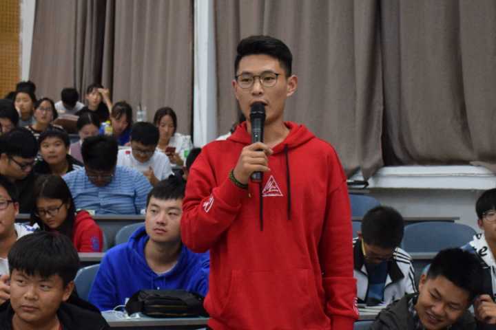 五位优秀学生都就自己亲身经历向18级新生分享大学学习生活经验。武恒岳阐述了学习的重要性,并鼓励新生们在大学生活中不断扩大自己的交流圈,让自己成为一个有正能量的人;栾雅慧希望每个新生都能在大学中做好未来规划、用心学习、培养健全人格、学会自我独立、丰富人生经历,从而收获满满;张欣就大学生活几个方面发表感想,并鼓励同学们生活充实,勿虚度光阴;陈敏着重强调新生同学要学会选择,坚守底线,明确喜好,不要迷茫度日;蔡川表示大学生活中要保持危机感,努力学习,更要积极参与比赛,敢于挑战并从中自我完善。