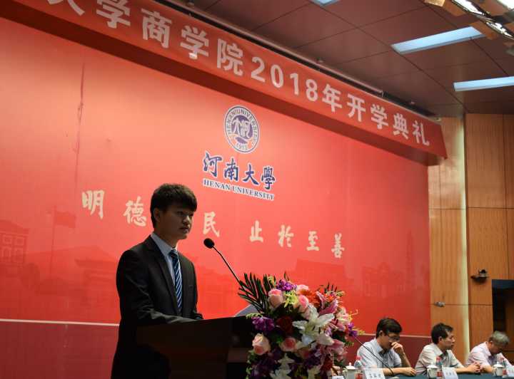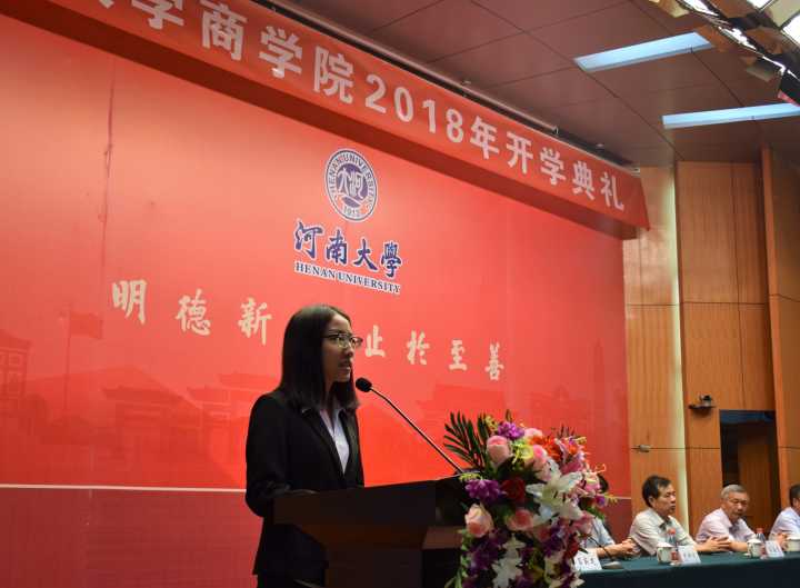 研究生任春苗和本科生周姿含作为新生代表发言。任春苗勉励所有同学敢于承担、立志成才,心系天下,为祖国和社会的建设贡献自己的力量。周姿含倡议大家拒绝拖延、拒绝懒惰,秉承“明德新民,止于至善”的校训、刻苦学习,做一名德才兼备、敢于担当的河大青年。