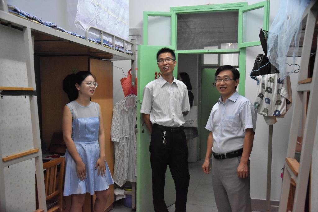 2018年9月2日晚18时,院党委书记冯海清、院长王性玉、党委副书记吕英建、副院长刘新仕带领全体辅导员分别前往本科生、研究生新生宿舍进行慰问。