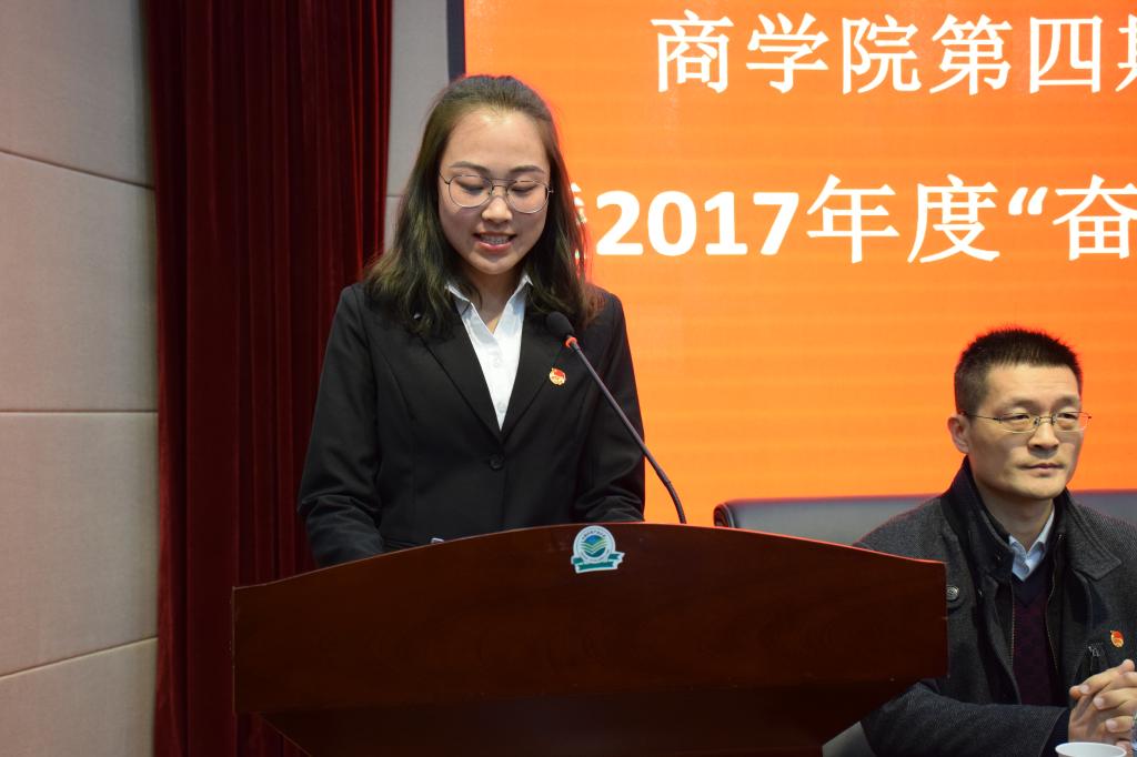 杨俊中致辞。他感谢学校相关部门对开云kaiyun官网学生工作的大力支持,向受到表彰的老师以及获得“奋斗之星”称号的同学们表示了热烈的祝贺。他指出,2017年学院在学科评估、博士点申报方面都取得了可喜的成绩,工商管理一级学科博士点的摘取为学院发展注入了新的动力。他希望通过此次表彰,能够引导全体同学在未来的学习中,培养无畏的胆识,磨炼坚韧的意志,树立坚强的自信,勇于挑战,敢于创新,为社会进步和发展贡献自己的力量。