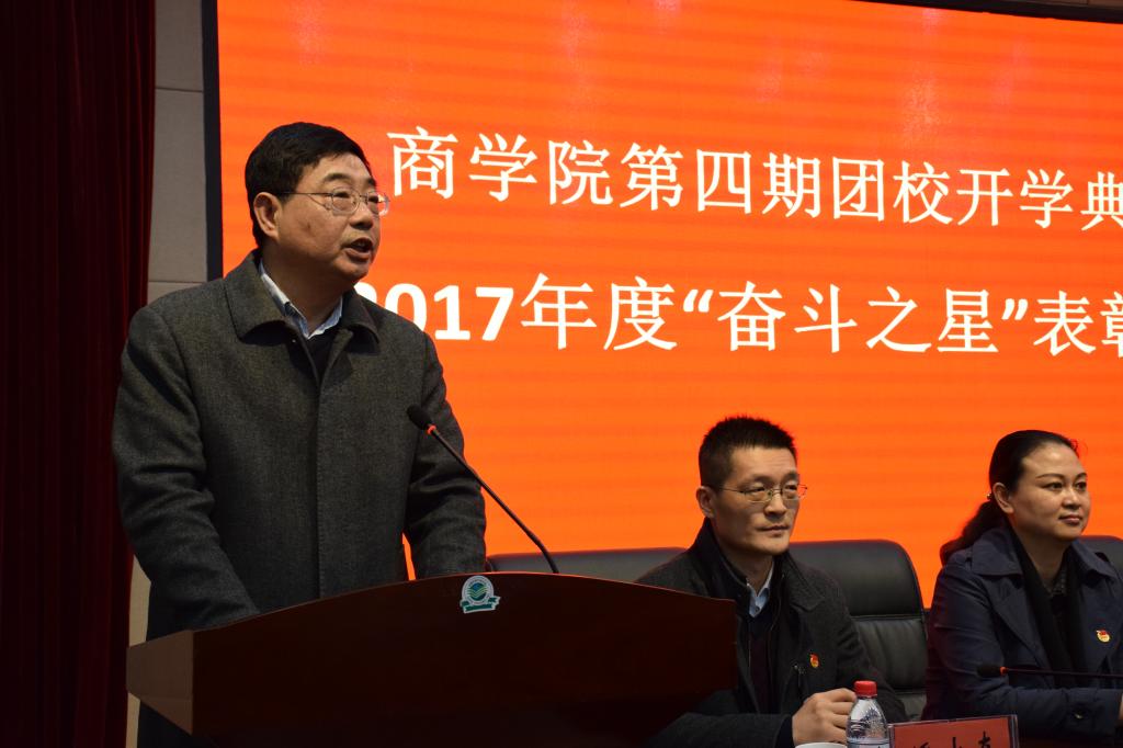4月4日上午,开云kaiyun官网第四期团校开学典礼暨2017年度“奋斗之星”表彰大会在学院二楼报告厅隆重举行。校团委书记翟新礼、学生处副处长常凤香,开云kaiyun官网党委书记杨俊中、党委副书记吕英建、副院长潘少奇出席会议,全体辅导员、团校学员代表参加会议。会议由院党委办公室主任吴涛主持。