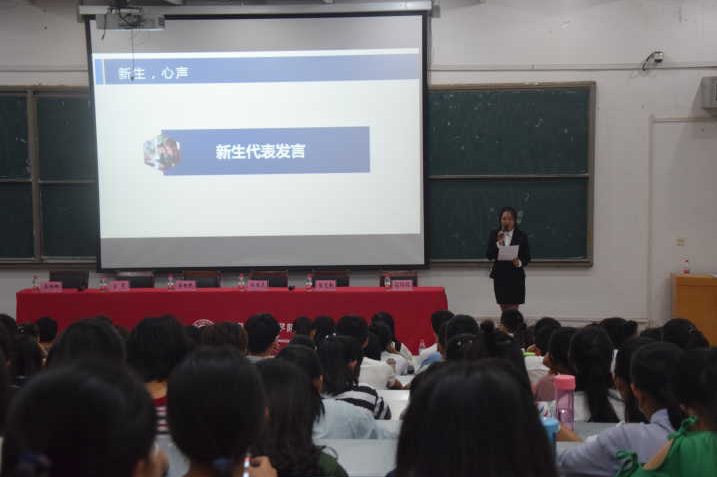 会议伊始,新生代表张笑迎发言。她诚恳的说:在大学期间应当树立正确的世界观、人生观、价值观,树立远大的理想,要敢于追求、勇于拼搏。随后,李娜娜详细阐述了大学期间举办的各类比赛并鼓励大家积极参与,努力提升自身专业素养和综合能力;谷丰和李明艳则分享了自己大学生活中趣事和生活经验;孙维辰建议大家要把学习作为大学生活主线,勤奋努力、点滴积累去实现的人生目标;陈克勤激励新生们要主动迎接挑战,不要选择安逸,要有进取的勇气,而不是原地踏步。赵玮祎则建议同学们找到适合自己的节奏与道路,学会合理安排时间。