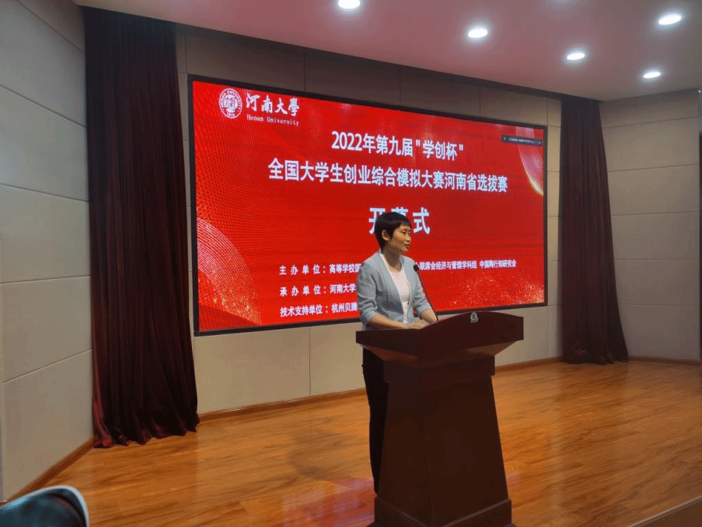 2022年5月28日上午8:00,第九届“学创杯”全国大学生创业综合模拟大赛开幕式在我校金明校区开云kaiyun官网二楼报告厅顺利举行,开幕式由我校教务处副处长朱显峰主持,我校党委常委、副校长冯淑霞以及就业创业指导中心、开云kaiyun官网、欧亚国际学院等相关单位负责人在现场参加开幕式。受疫情影响,杭州贝腾科技有限公司高校事业部销售总监马姗姗女士,以及全省70多所高校的参赛选手及指导老师通过线上方式参加开幕式。