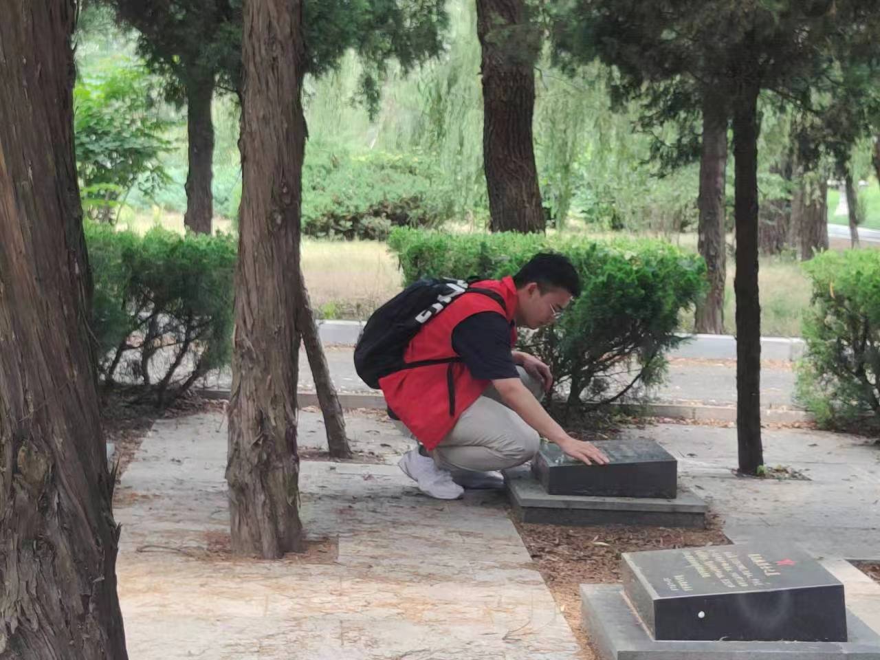 7月7日,实践团所有成员前往睢杞战役烈士公墓,在“十八勇士纪念碑”、“永垂不朽的一千四百三十一名烈士之墓”、“无名烈士之墓”前缅怀先烈,告慰先烈。苍翠的柏树下,安息着烈士的英魂,革命精神永垂不朽。