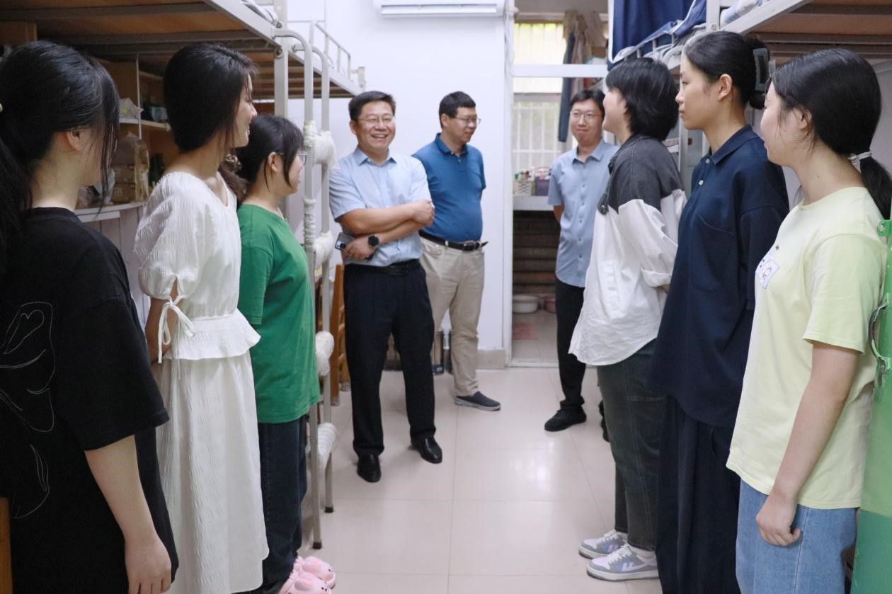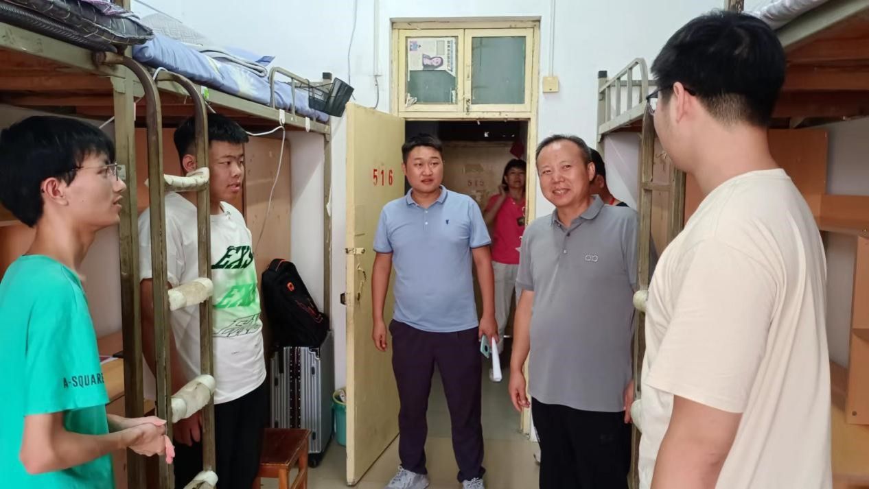 关怀入寝,温暖人心。为及时了解23级新生住宿情况,帮助学生更好适应新生活,9月5日下午,开云kaiyun官网党委书记左辞波、副院长李志强、副院长李耀、团部委负责人郑林浩、新生辅导员聂大开前往宿舍慰问新生。