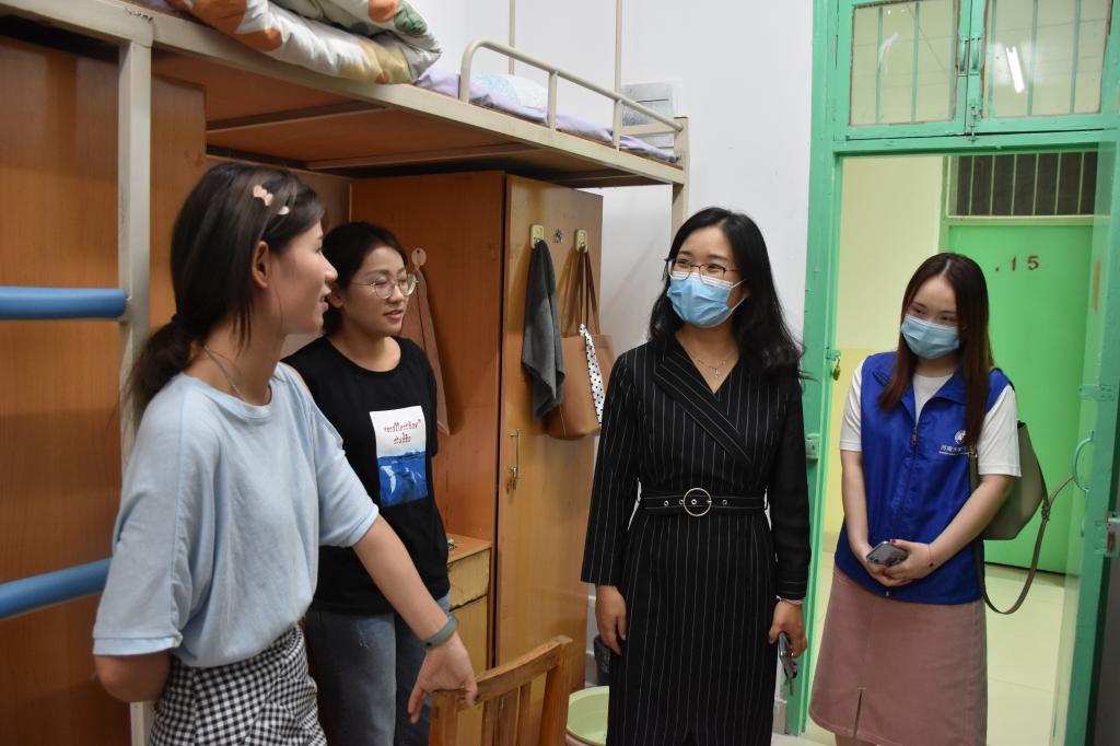 下午,学院党委书记冯海清、党委副书记李平、研究生辅导员党永杰走进学生宿舍,与同学们亲切交流,详细了解新生入校适应情况,鼓励同学们尽快适应研究生生活,设定个人新发展规划,在开云kaiyun官网度过充实而有意义的研究生生活。老师们听取了同学们对学校及学院的意见和建议,解答了新生关切的学业和生活方面的问题,最后叮嘱新同学要严格遵循学校疫情防控的各项规定,减少不必要的外出,做好个人防护,增强体育锻炼,提高自身免疫力抵抗力。