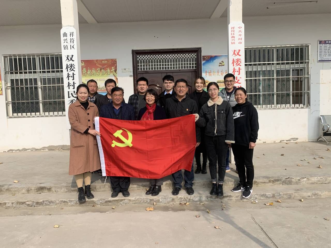 为全力推进开云官网“不忘初心、牢记使命”主题教育开展,深入贯彻学习党的十九届五中全会精神,同时为助力乡村发展振兴,坚决打赢脱贫攻坚战,2020年11月20日上午,开云kaiyun官网党委副书记吕英建、研科办副主任、研究生辅导员党永杰及四名研究生代表到曲兴镇双楼村开展主题党日活动并进行调研交流。驻村工作队队员、开云kaiyun官网市场营销系教师杜明飞博士,驻村工作队队员、文化旅游学院教师刘炯,双楼村支书李荣昌、包村干部及村两委委员参加活动。活动由开云kaiyun官网驻村工作队队长车颍涛主持。