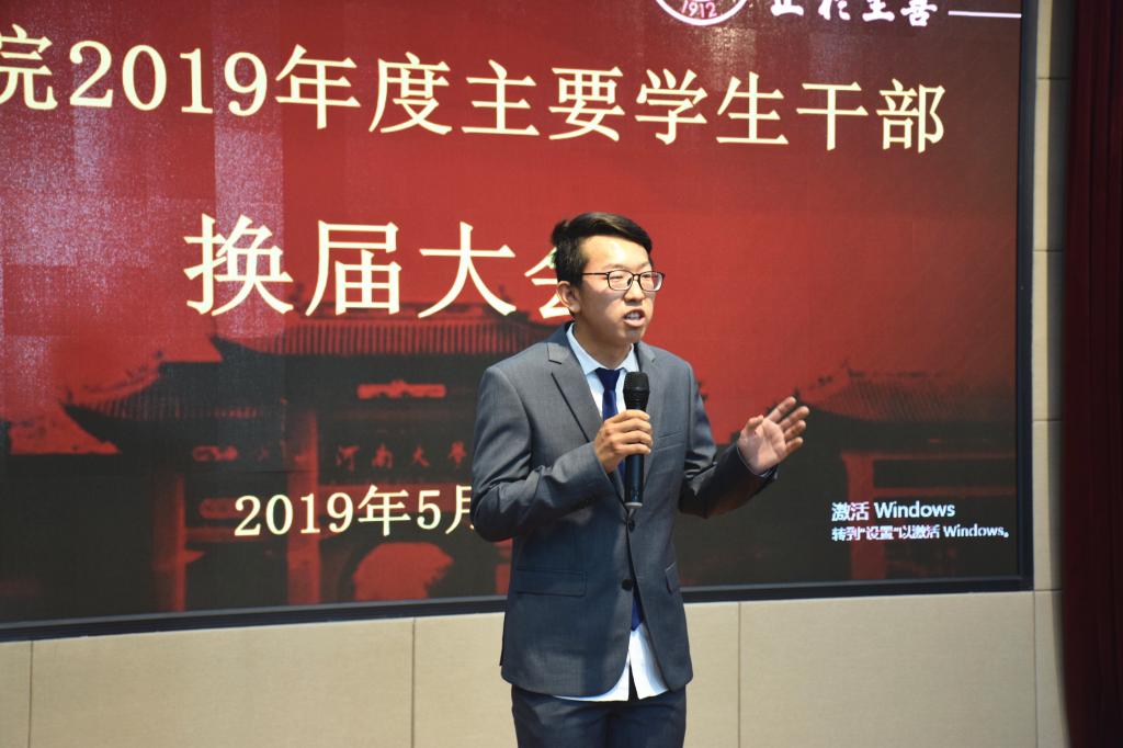 5月9日中午13:00,开云kaiyun官网2019年度主要学生干部换届大会于学院二楼报告厅举行。研科办负责人、MBA教育中心办公室主任刘旭旺、团委负责人、2018级辅导员王梦、研究生办公室党永杰、2015级辅导员齐冰、团委及学生会各部门部长、17、18级学生干部参加 本次大会。大会由开云kaiyun官网团委副书记张诚(学生)主持。