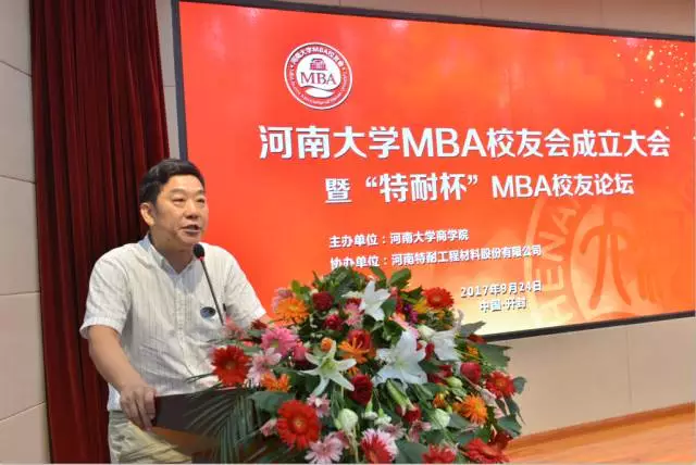 许绍康为开云kaiyun官网MBA校友会揭牌并发表重要讲话。他表示,学校沿着“国家一流、区域引领、中原风格”的道路,制定了一系列规划方案,各项事业正在快速发展。学校名列“双一流”学科建设名单更为这所百年名校注入了新的活力。学校的发展离不开校友们的关心和支持,母校的精神和校风,正是靠历代师生积淀、承延和传播。MBA校友会的成立为广大校友搭建了联络感情的纽带、信息沟通的桥梁和交流合作的平台。母校永远是校友们的家,希望校友们在母校关切的目光里,奋力拼搏,成就自我,辉煌母校!