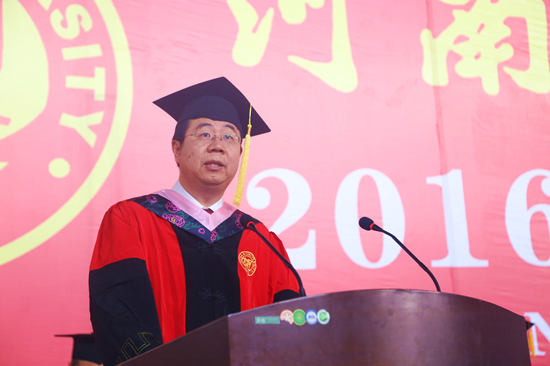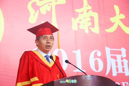 “今天过去,一切都将成为回忆。陪伴你们孤单过、迷惘过、哭过、笑过的古朴典雅的大礼堂,以及河大园里的一草一木,一切都将过去,但过去的一切都是最值得珍藏的记忆。”导师代表苗雨晨教授分享了自己的求学历程,并向同学们提出几点建议和希望:终身学习,不断创新;不忘初心,方得始终;仰望星空,脚踏实地;追逐梦想,快乐前行。