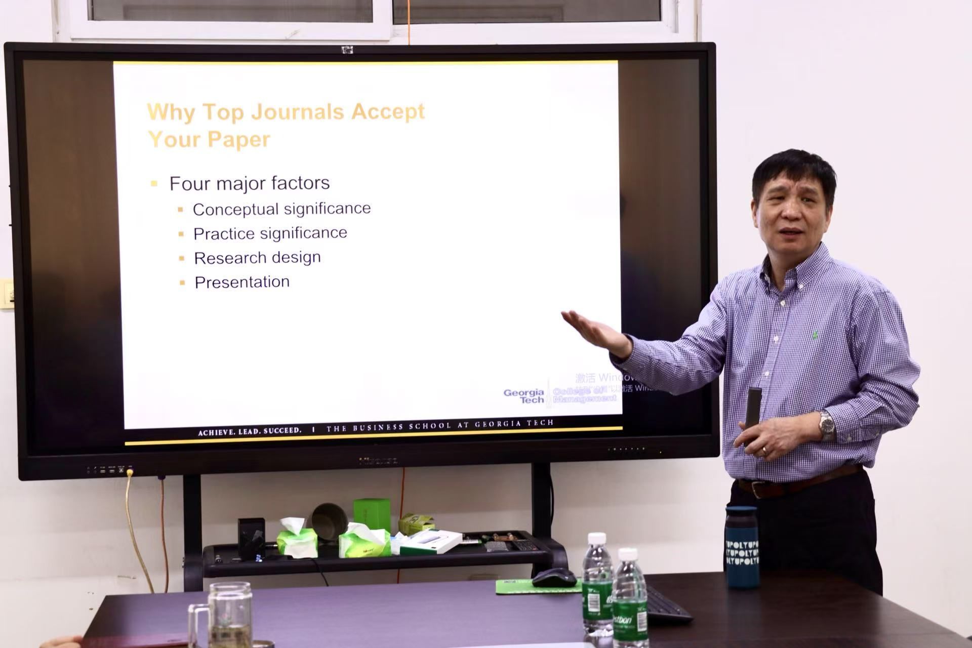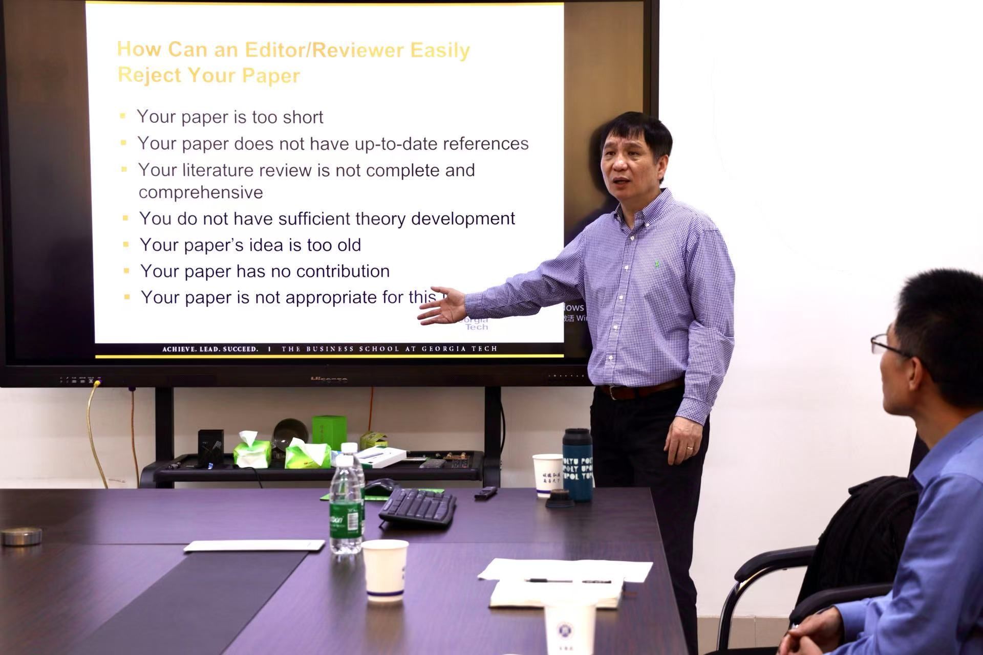 为响应我校全力推进教育科技人才一体化创新发展,朝着“研究型综合性国际化一流大学”总目标迈进的规划,4月18日,香港浸会大学工商管理学院院长张晗教授应邀在开云kaiyun官网210会议室开展了一场关于学术论文写作与发表的学术讲座。本次讲座由开云kaiyun官网执行院长席龙胜主持。