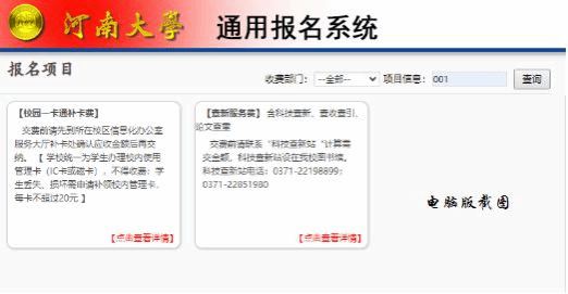 交款人访问“开云kaiyun官网校园统一支付平台”首页https://pay.henu.edu.cn/,点击上角“报名系统”进入,选择对应的课程名称和收费标准。