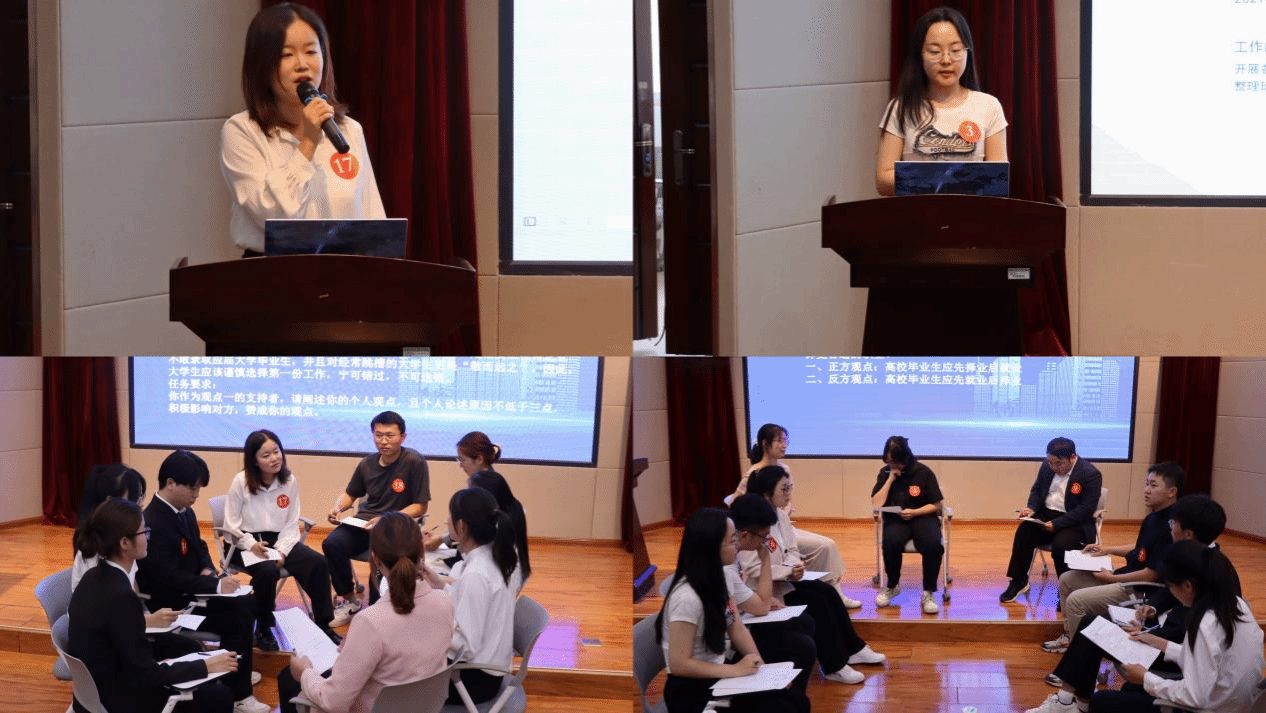 席龙胜宣布总决赛正式开始。总决赛共分为三个环节。第一环节为风采展示,选手们从求职意向岗位出发,结合个人优势及经历等方面展现自身综合能力。第二环节为无领导小组讨论,参赛选手分成两组,分别就主题展开讨论,充分展现选手们交流沟通、团队协作以及分析解决问题的能力。第三环节为随机应变,评委根据选手情况现场命题,选手们反应迅速,沉重稳定,结合自身经历从专业角度回答问题,赢得评委连连赞叹。现场气氛热烈,掌声不断。