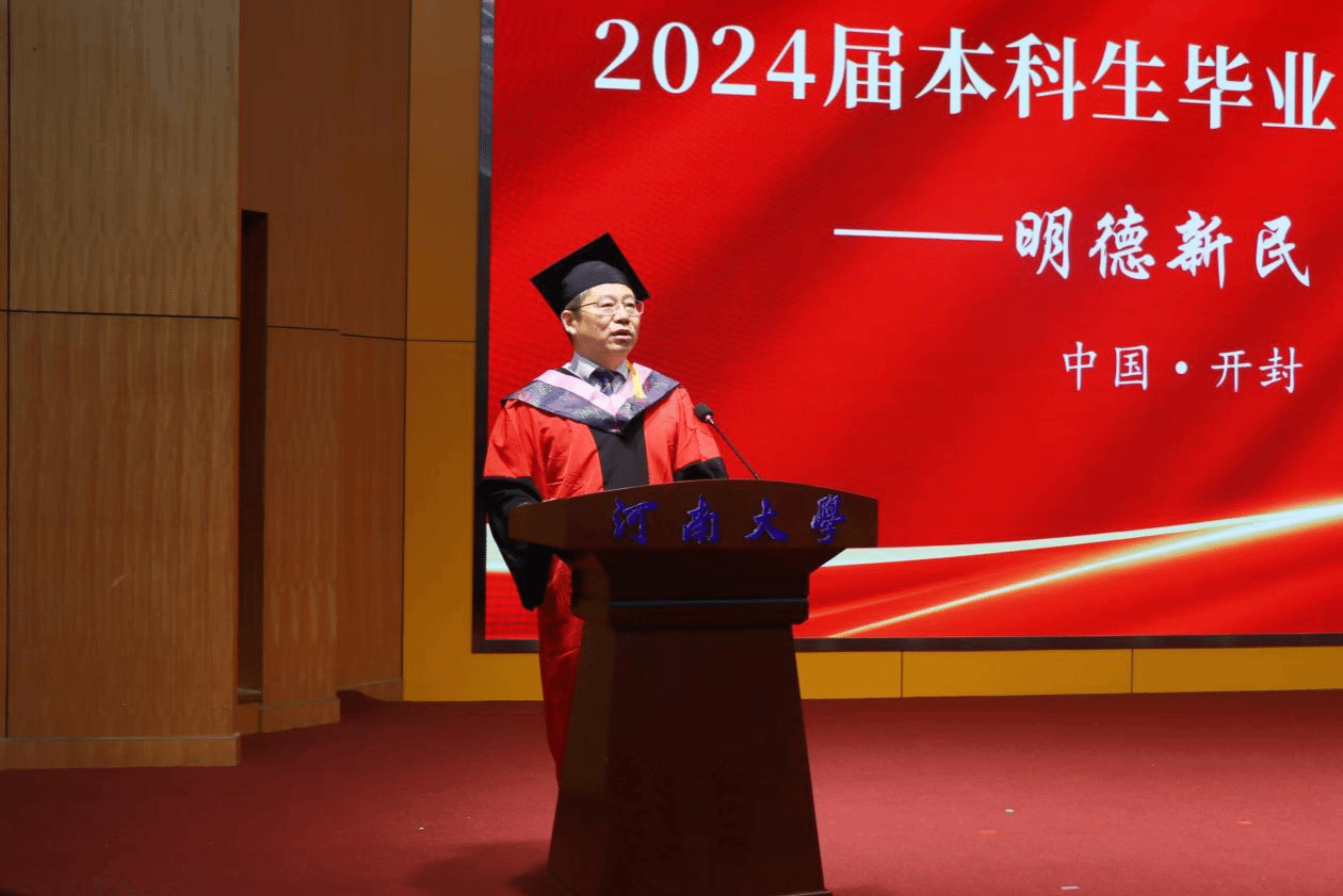 “初心应不改,明日展鸿鹄”。学院党委书记左辞波在讲话中向全体毕业生表达了热烈的祝贺,向悉心培养的家长和辛勤耕耘的教师们致以崇高的敬意。他勉励毕业生要坚定理想信念,勇担时代重任,发扬“河大人”的家国情怀和历史担当,将个人理想与国家发展、民族振兴紧密结合起来,激扬青春、为国奉献;要坚守修德修为,锤炼高尚品格,以一颗赤子之心坚守对真善美的执着追求,弘扬正能量、传递真善美;要坚持明德弘道,商善天下,勇于创新、敢于探索,将所学所思所悟转化为推动职业发展的动能,立足岗位敬业奉献,成为母院永远的骄傲。