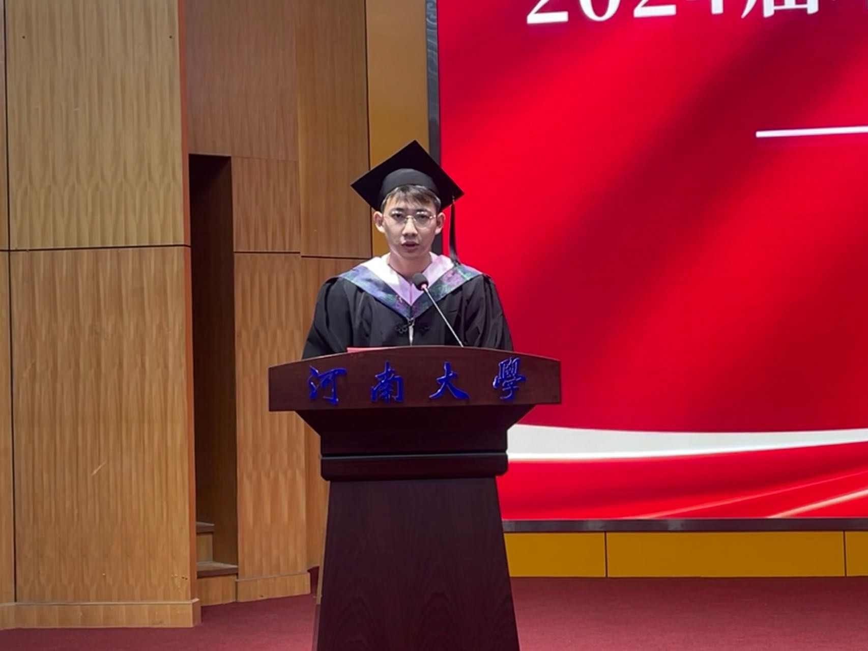 典礼开始前,屏幕播放2024届毕业生精心拍摄的回忆视频,四年的青葱岁月以照片形式一一展现,令人动容。