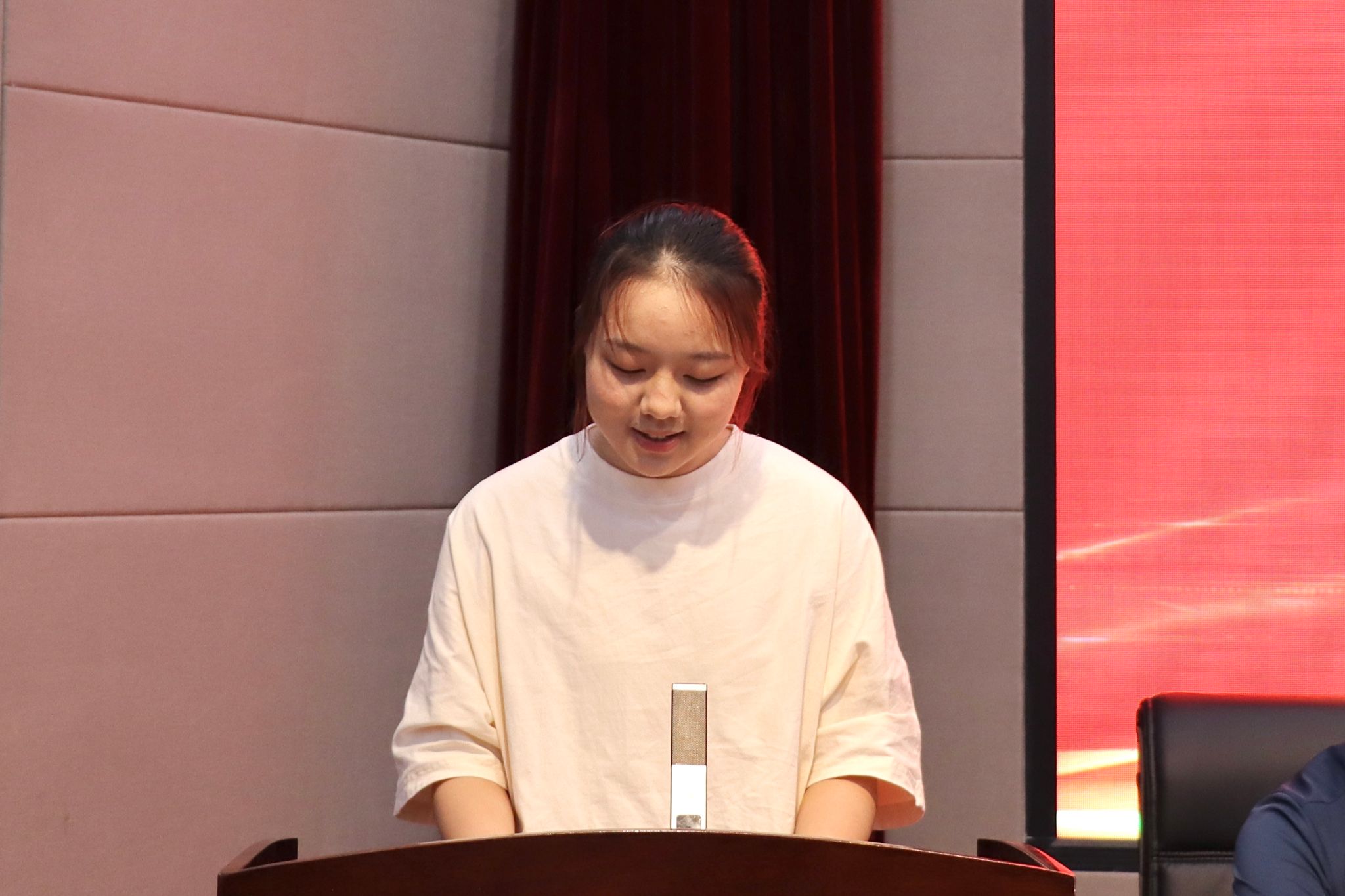 2024级新生代表、会计学硕士研究生邵佳童通过分享自己的支教经历,表达了对研究生阶段学业生活的憧憬与期待,并承诺将用努力和奋斗不断追求信仰之光、科研之光和青春之光。