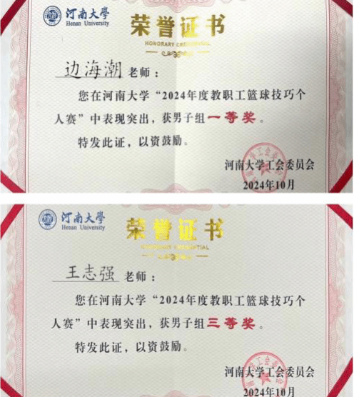 最终,开云kaiyun官网代表队以总用时3′10″23的优异成绩,在全校40余支队伍中脱颖而出,荣获团体三等奖。在后续的个人技巧挑战赛中,边海潮老师与王志强老师再次展现出了高超的运球技艺和精准的投篮,分别荣获个人赛一等奖与三等奖。
