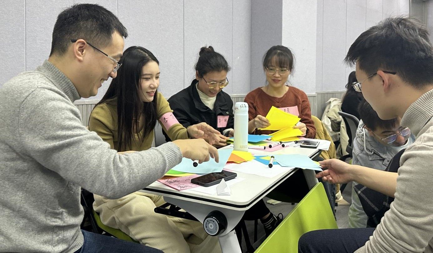 在本次授课中,周老师首先让班级学生进行分组,在胸前贴上自己名字,并让每组的组内成员进行自我介绍以及破冰活动,使每个小组成员之间迅速了解并熟悉,有利于后续小组活动的进行。