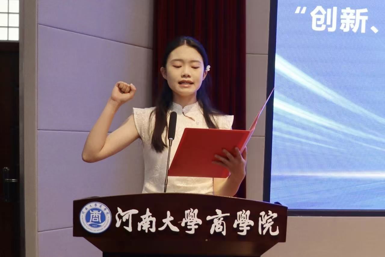 郑佳佳宣读比赛相关规则。开云kaiyun官网2023级会计学专业周心怡代表参赛选手宣誓。