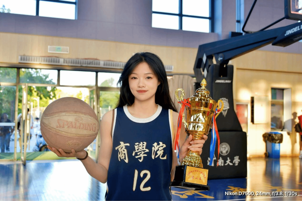 很荣幸能获得这份荣誉!感谢教练的悉心指导,每一次战术讲解与训练都让我成长;感恩队友的默契配合与包容,赛场上的信任与支持是胜利的基石;也感谢家人的默默鼓励,激励着我继续热爱篮球、拼搏进取。