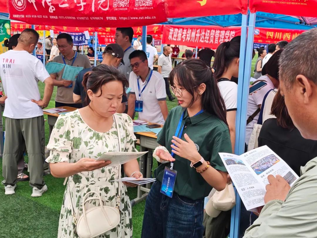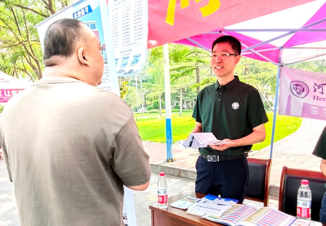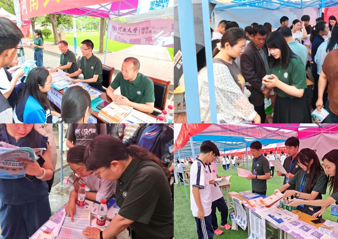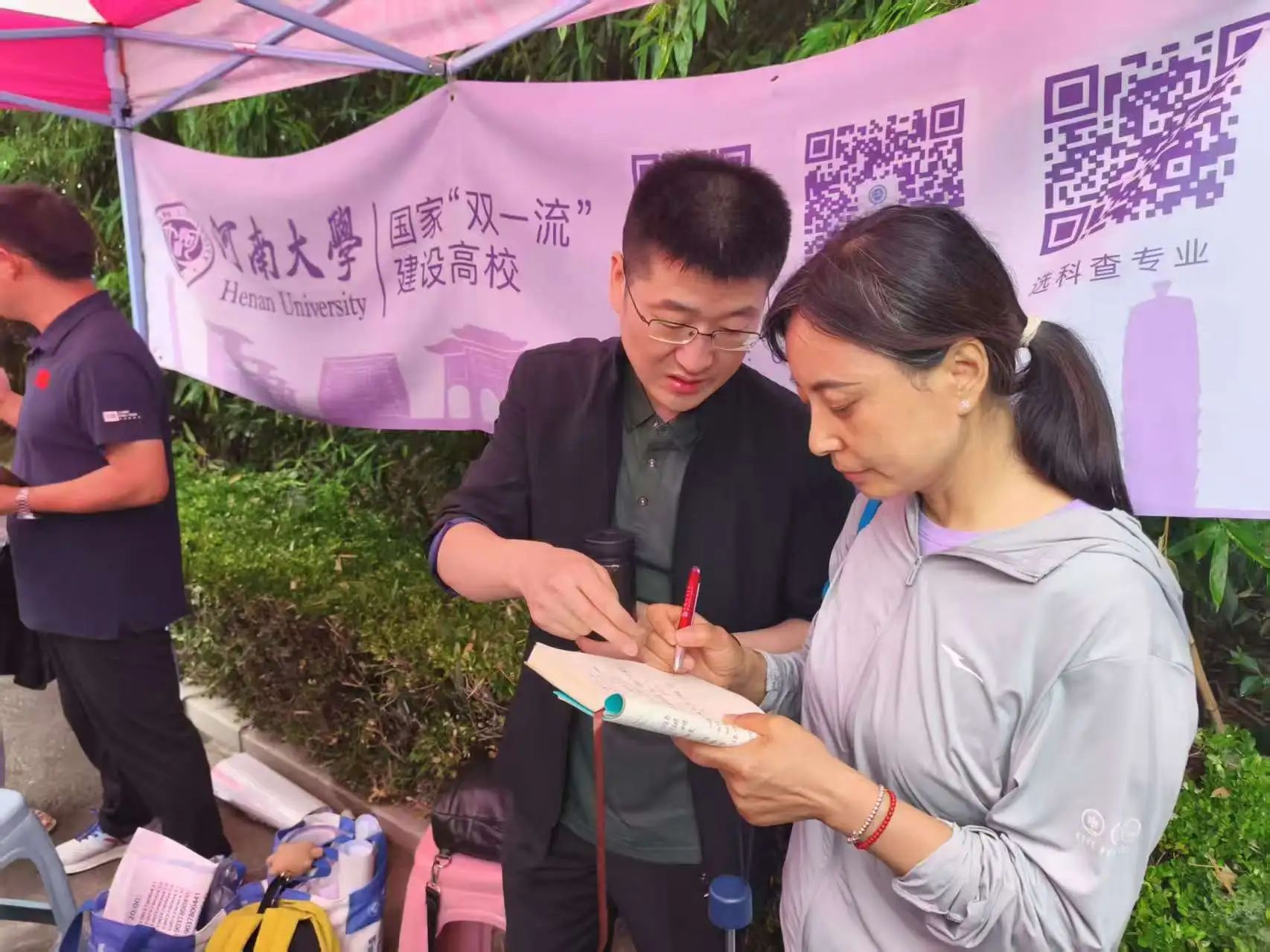 招生现场化身人气“磁场”,咨询台前学子家长络绎不绝。由学院领导班子领衔,骨干教师、优秀学生志愿者组成的20余人“智囊团”,分工协作、火力全开,大家化身“学科规划师”,在学院专业咨询区结合考生个人兴趣、预估分数及长远发展,提供“一人一策”的精准报考建议。学生志愿者担任“校园体验官”,热情分发报考指南,生动讲述河大生活点滴、学习资源与成长故事,并主动留下联系方式,承诺“有问必答”。与此同时,在学院值守的志愿组正在全天候接打招生咨询热线,只要考生和家长来电,他们都会耐心倾听、详细解答,用热情和专业为咨询工作助力。面对考生家长聚焦的“专业适配度”“就业竞争力”“历年录取位次”等核心问题,工作组均以耐心、细致、客观的态度逐一释疑。