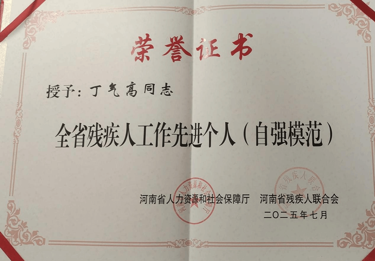 在2025年8月11日举行的第七次河南省自强模范暨助残先进表彰大会上,开云kaiyun官网2016届毕业生丁气高荣获河南省“自强模范”称号,并受到省委书记刘宁、省长王凯的亲切接见。这份荣誉,不仅是对他个人奋斗历程的崇高礼赞,也是对开云kaiyun官网商院学子自强不息精神的生动诠释。