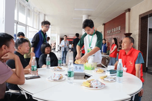 家长休息区,温暖持续传递。学院专门设置了休息区让远道而来的家长们“补充能量”,并配备志愿者答疑解惑。从专业课程到校园生活,一次次亲切的交流,悄然化解了家长的疑虑,也实现了学院与家庭之间关于“共同守护新生成长”的暖心接力。