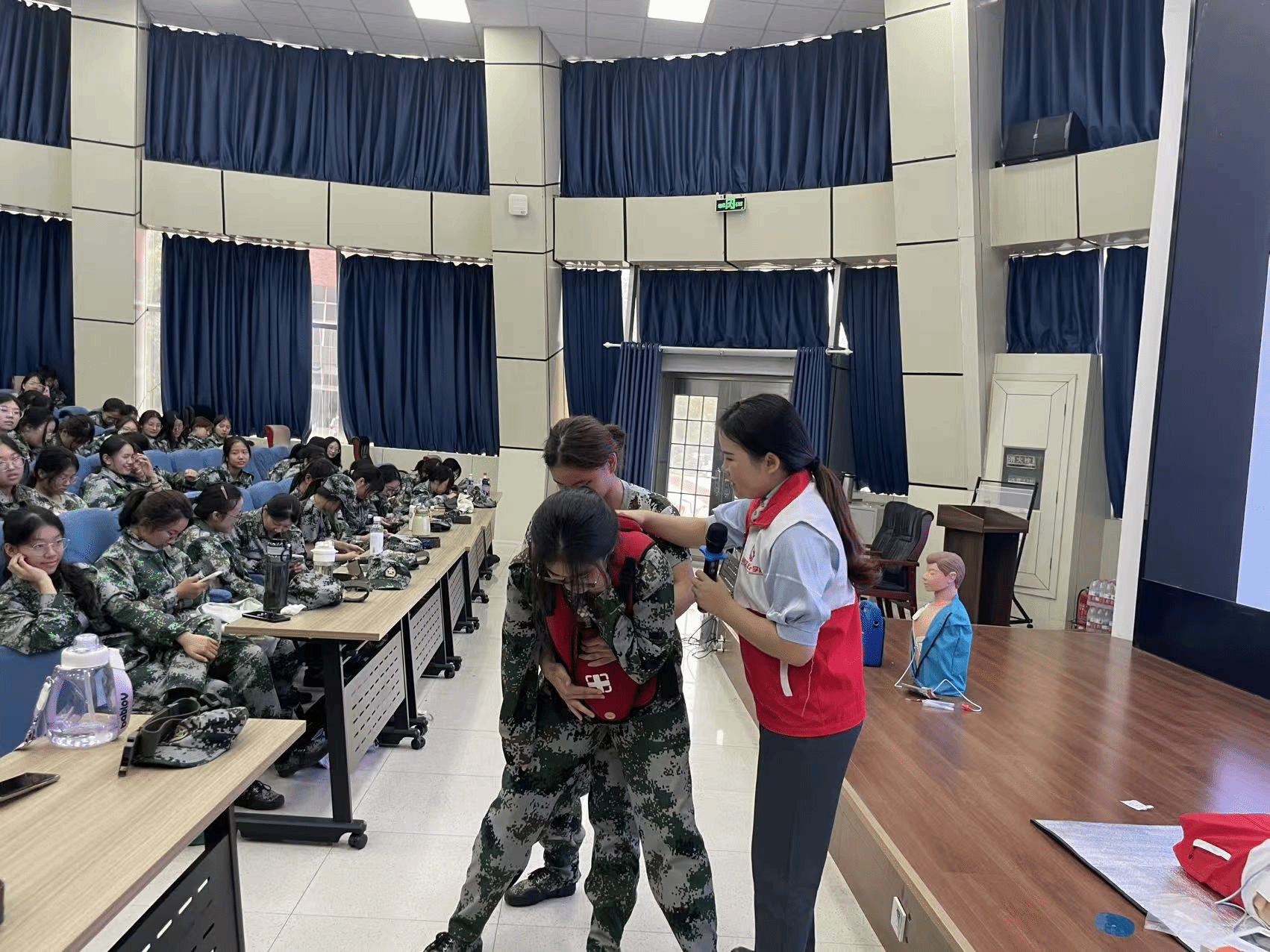 培训中,王帅和赵娟讲师以理论讲解结合实操演示的方式,让学生快速掌握急救要点。在心肺复苏(CPR)环节,王帅、赵娟详细拆解“判断意识—呼叫救援—胸外按压—人工呼吸”全流程,着重强调“黄金四分钟”对挽救生命的关键意义,并指导新生分组实操演练,帮助大家初步掌握心肺复苏核心要领;在气道异物梗阻急救法培训中,结合典型案例,讲解异物卡喉的识别与处理方法,现场示范了适用于成人、孕妇及自救的不同操作技巧,并进行现场演示与互动练习,提醒同学们在紧急情况下要保持冷静、迅速施救。此外,还系统介绍了多种常见外伤包扎方法,如,按压式、环绕式、螺旋式及三角巾在头部、手臂等部位的固定技巧,新生们掌握了如何在突发伤情下进行初步处理,为后续专业救治争取宝贵时间。