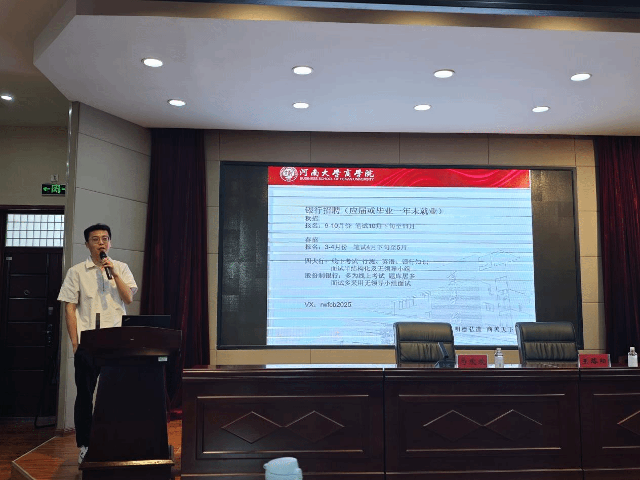 李岩奇,就业至中国银行河南省分行。首先,李岩奇详细地阐述了他选择四大行的原因,并详述了秋招和春招的具体时间节点。随后,他深入介绍了四大行以及股份制银行的考试内容和招聘流程,并建议同学们积极利用一切渠道获取信息、争取机会,为即将步入职场的同学们提供了实用的指导。