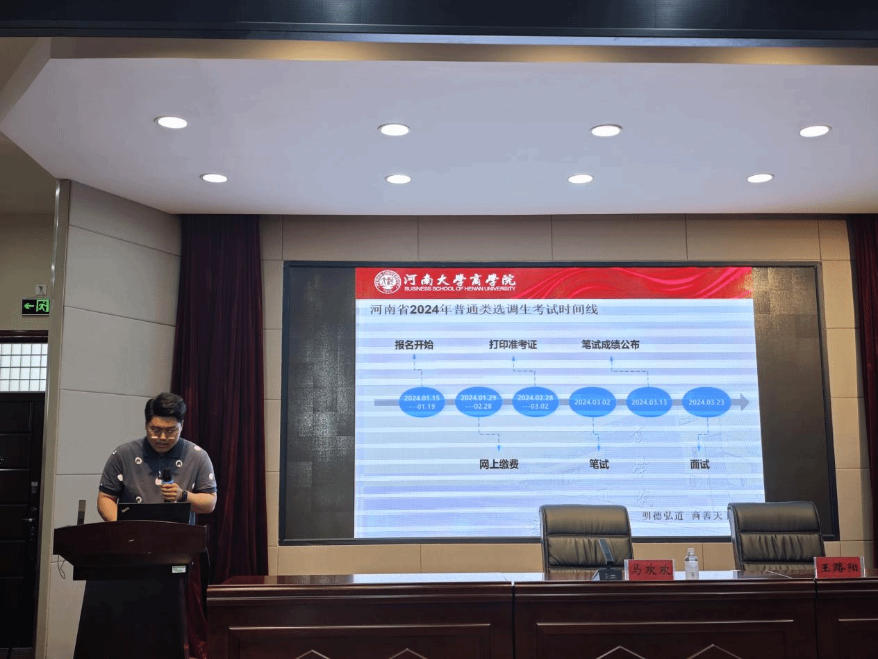 侯曾元,2022级会计专硕,上岸周口市普通选调。首先,侯曾元详细介绍了河南省普通选调生考试的时间安排。随后,他向大家介绍了非定向选调笔试的题型。最后,他分享了自己的备考时间安排和备考过程中的误区,并给出对应的建议,比如善于利用各个机构发放的知识册、申论的学习需要在平时多加练习等。