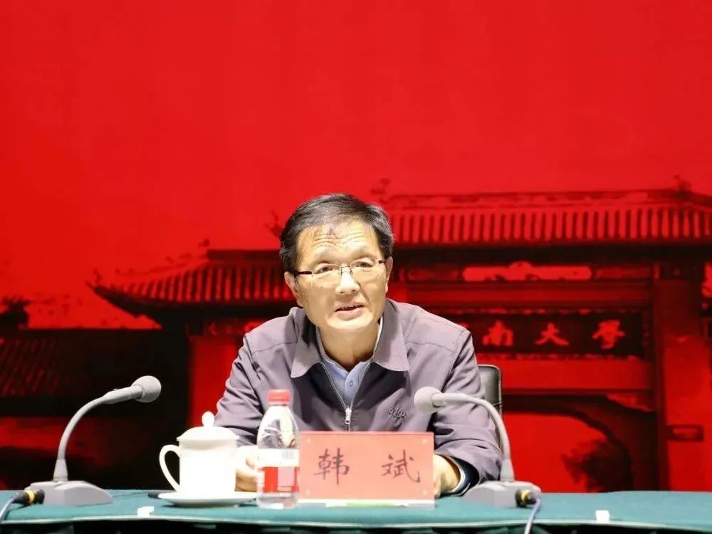 4月12日,我校在金明校区计算机大楼二楼报告厅召开学习贯彻习近平新时代中国特色社会主义思想主题教育工作会议。省委第二十二巡回指导组组长、省政协委员联络委员会副主任韩斌,副组长钱忠宝和指导组全体成员到会指导,全体在校校领导、全体中层领导干部参加会议。会议由校党委副书记、校长张锁江主持。