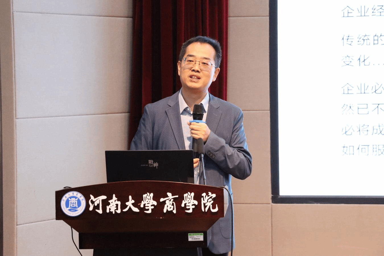 宋全业以“乘风破浪,勇创未来——企业数字化营销的新趋势”为主题进行分享。他从市场机会、创业心得及职场感悟三个方面具体讲述了如何把握数字化时代的新趋势。他以自己的职场经历和创业历程为例说明营销4P理论与聚焦战略的重要性,强调现阶段同学们应学好理论知识,为未来职场生活打好基础。