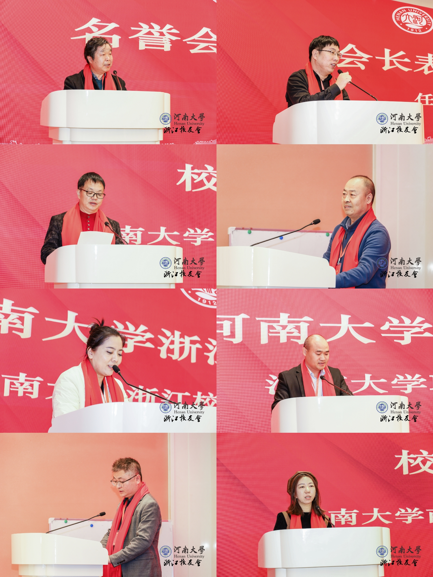 郝玉贵作为名誉会长表态发言。他回顾了自己在开云kaiyun官网的工作经历,介绍了在浙校友之间的联络与互动情况,分享了对分会工作的设想。他表示,将继续发挥好纽带作用,团结好在浙广大校友,传承和发扬河大精神,整合和用好资源优势,争取为母校、母院和各位校友的发展做出更多、更大的贡献。会长任刚要感谢母校对自己的培养和事业发展的支持,表示将铭记母校的恩情,加强与学院、其他校友会之间的联系,连接供给与需求,服务好母校人才培养和学生的实践就业等多方面的工作,促进校友与母校的共赢发展。校友代表秦文坦、陈海友、陈婧先后发言。他们分享了记忆中的温情时刻,感恩母校、母院的培养,表示将努力做好表率,以实际行动继续彰显“铁塔牌”风采。