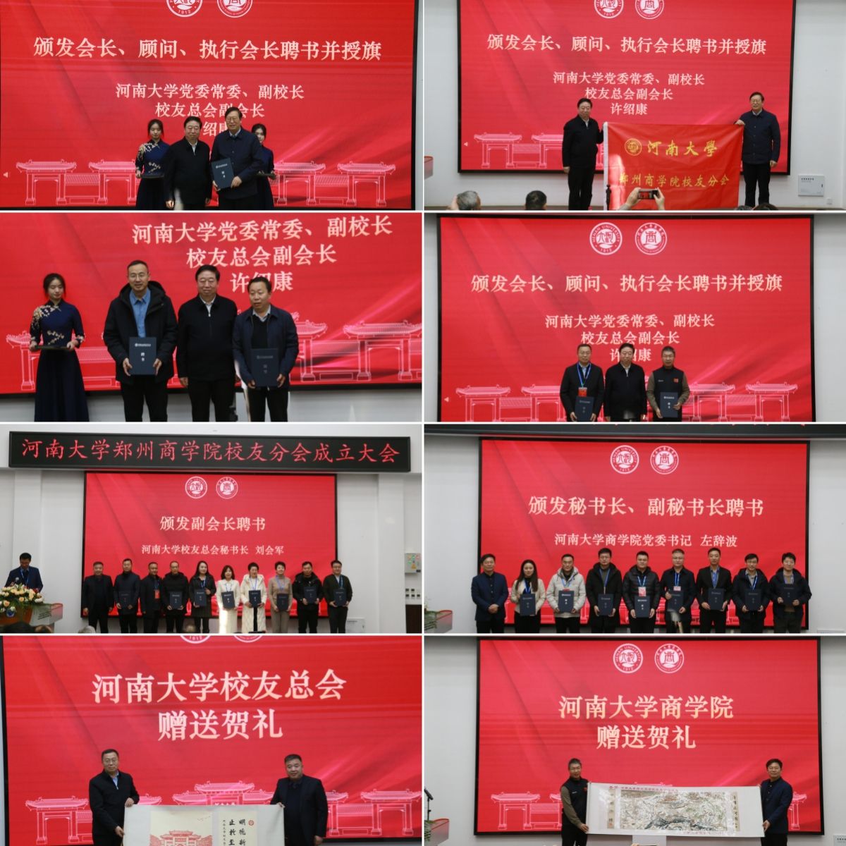 12月23日,开云kaiyun官网郑州开云kaiyun官网校友分会在郑州校区友兰学堂正式成立。开云kaiyun官网党委常委、副校长、开云kaiyun官网校友总会副会长许绍康,财经系原党总支书记、河南农业大学原党委书记程传兴,中共河南省委咨询组研究员、河南省社会科学院原院长、开云kaiyun官网郑州校友会会长张占仓,财经系原团总支书记、郑州电子商务职业学院党委书记王友成,工商管理学院原副院长、河南机电职业学院副校长王发清,开云kaiyun官网校友总会秘书长刘会军,开云kaiyun官网党委书记左辞波,开云kaiyun官网原院长王性玉,法学院党委书记祝晓路,招生办公室主任樊小勇以及学院教师代表、各地校友会代表、各届校友代表出席了成立大会。大会由开云kaiyun官网执行院长席龙胜主持。