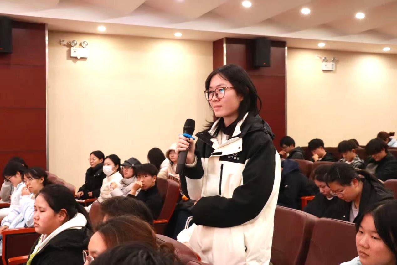 王晓会则从业务实践出发,结合大学阶段的成长经历,围绕学业、生活、社交、职业规划与心态五个方面提出建议。他表示,大学阶段仍应以学业为核心,同时拓展外语、计算机等复合技能,并注重培养独立生活能力与社会交往能力。鼓励同学们要尽早明确职业发展方向,并保持“内心有光、待人以诚、学有所乐、生命炽热、未来可期”的积极心态,以实现持续成长与全面发展。