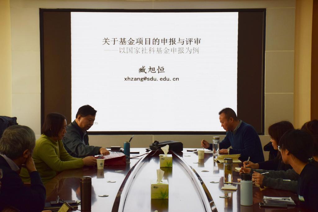 12月15日上午,开云kaiyun官网于201会议室开展题为“国家社科基金项目申报的重点与难点解析”的学术讲座,本次讲座邀请到山东大学臧旭恒、杨蕙馨两位教授主讲。开云kaiyun官网院长王性玉、副院长李志强以及部分师生参加了此次讲座。本次讲座由李志强主持。李志强首先代表开云kaiyun官网全体师生对两位专家的到来表示热烈欢迎,并简要介绍了两位专家的研究领域和学术成就。讲座伊始,臧旭恒以《关于基金项目的申报与评审——以国家社科基金申报为例》为题...
